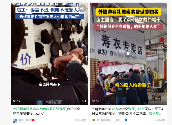 一则“外国人在寿衣店挑选衣服”的视频火了