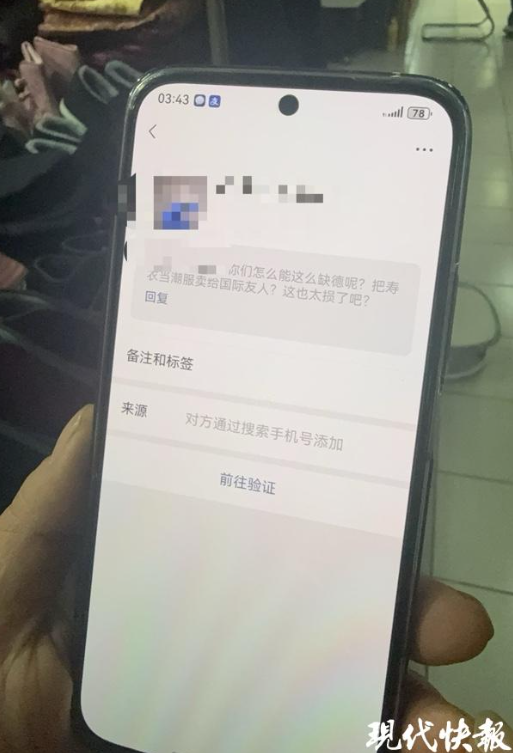 耿女士表示,当时有路人拍视频发在了社交平台,后来视频在网上火了起来。随后,事情的发展让耿女士也很无奈。网友拍摄的视频中,暴露了她的店名和联系方式,导致她的手机都快被打爆。耿女士一个上午接到了300多个电话,有一些人还要求加她的微信,然后就是各种辱骂、指责,说她把死人用品卖给外国人“缺德”。